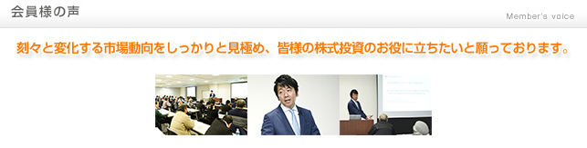 ・毎日強力なサポート有難うございます。入会から一ヶ月が過ぎましたが ご指示の銘柄の運用で利益をあげる事が出来ました。