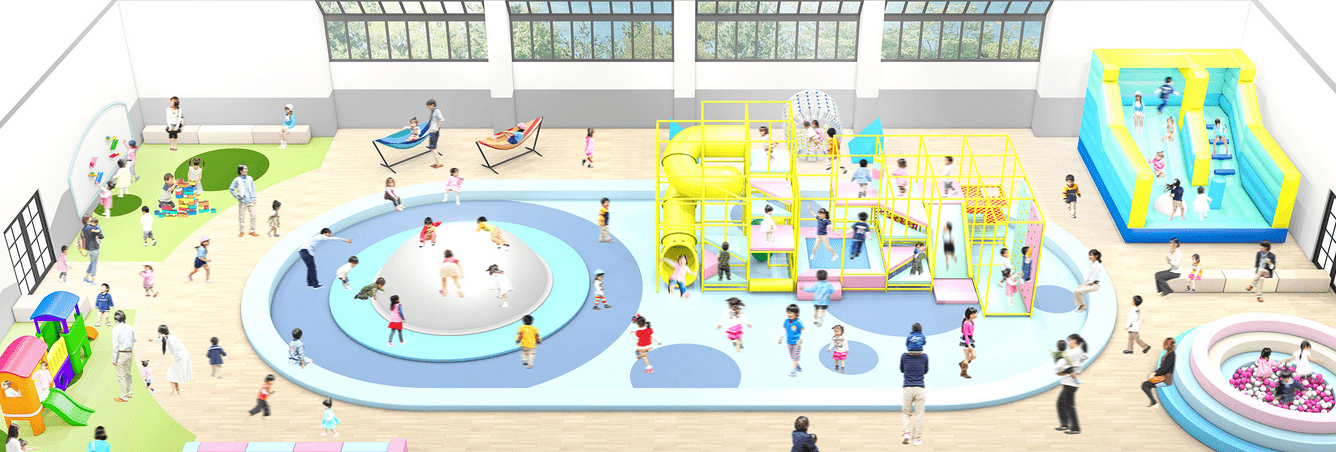 小さなお子さんをお連れの方は、「プレイキッズランド」もおすすめです。0~2歳対象のベビーエリア、3~5歳対象の発見エリア、6歳以上対象のメインエリアの3つのエリアがあり、ウォールデコ、滑り台やボールプール、トランポリンなど、さまざまな遊具が屋内にあるので、まだ外では全力で遊べないという小さなお子さんもたっぷり楽しめます。
