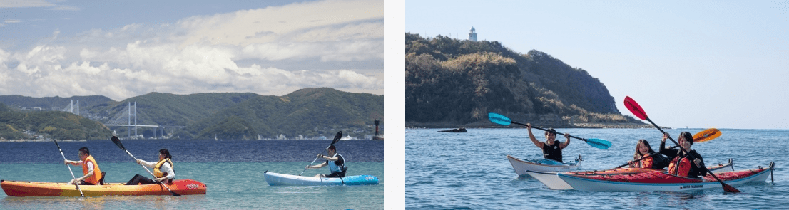 レンタル釣り具で魚釣りも可能。伊王島で大物を釣ってみたいという方にはもってこいですね。フィールドではトレッキングツアーやノルディックウォーキング、マリンではシーカヤックやSUP、バナナボートに体験スノーケリング・ダイビングなど、様々なアクティビティを楽しめるので、何をやろうかと考えている時間もわくわくしますね!