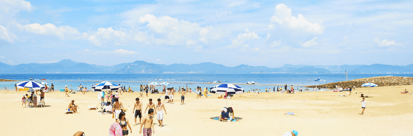 夏期には、リゾート気分を満喫できる伊王島海水浴場「コスタ・デル・ソル」も楽しめます。まぶしい太陽、青く輝く海と白い砂浜がリゾート気分を盛り上げます。透きとおるキレイな海では小さなお魚も見られるので、子どもにも大人気の海水浴場です。